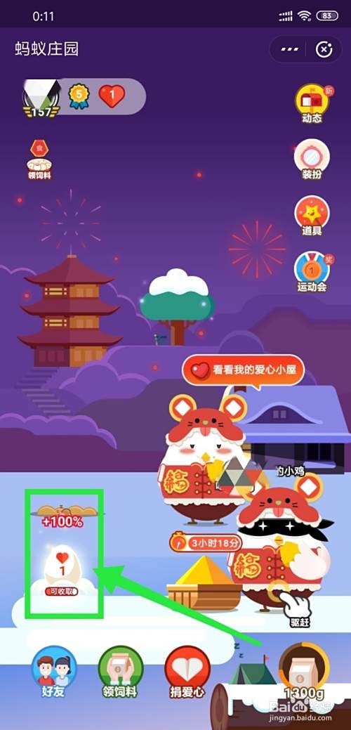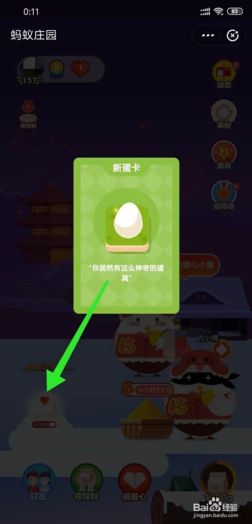 第四、页面回到蚂蚁庄园,出现新蛋卡正在使用的画面;