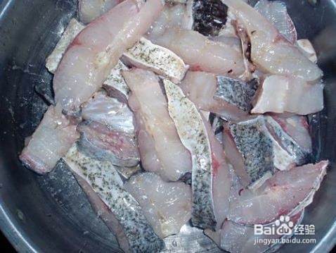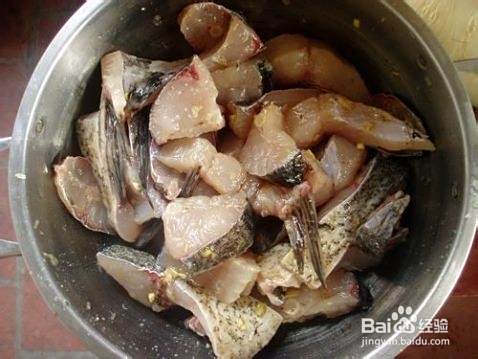 把鱼切成块,用清水过一遍,将血丝等洗干净。