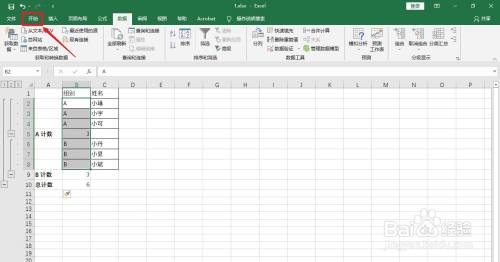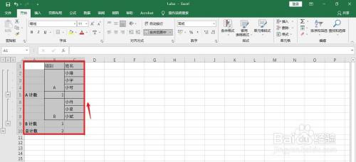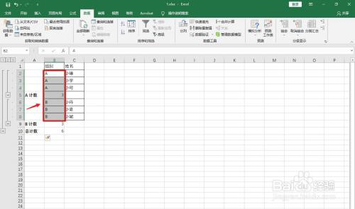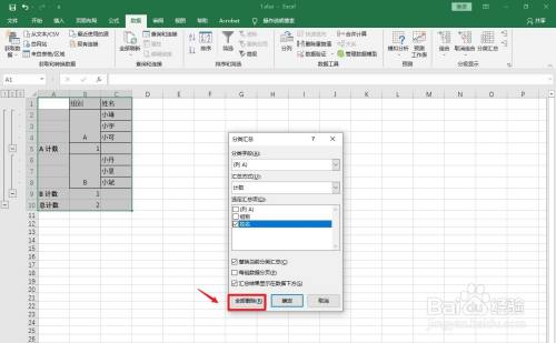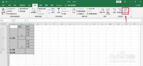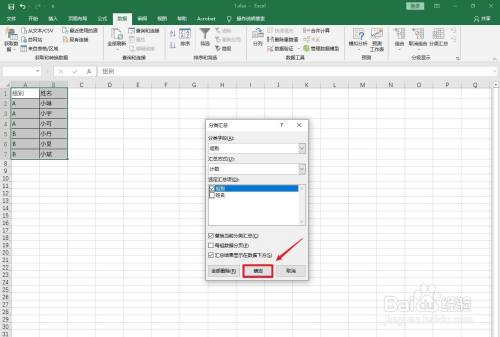 设置选项:分类字段:组别,选定汇总项:组别。