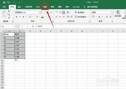点击上面的【数据】。