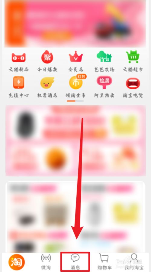 首先我们运行手机淘宝,点击底部第三个按钮打开【消息】。