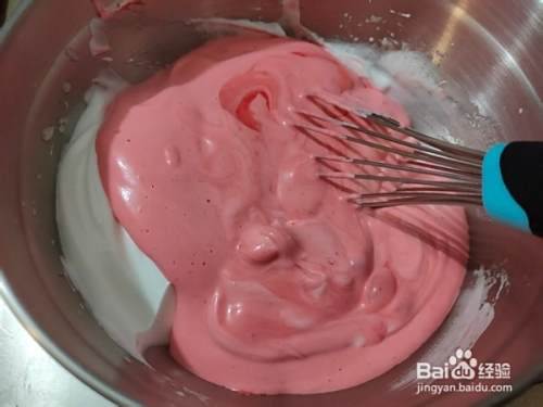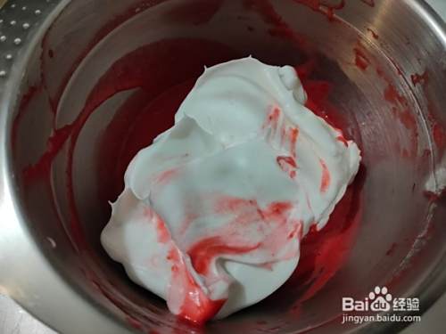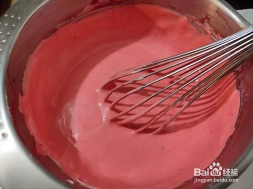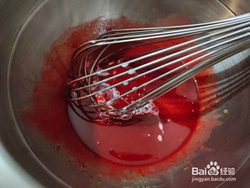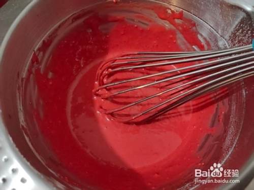 再滴入红丝绒果味香精,搅拌均匀。