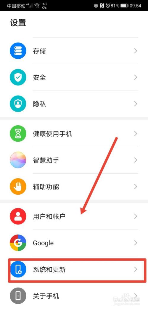 在设置页面,继续点击进入系统和更新功能;