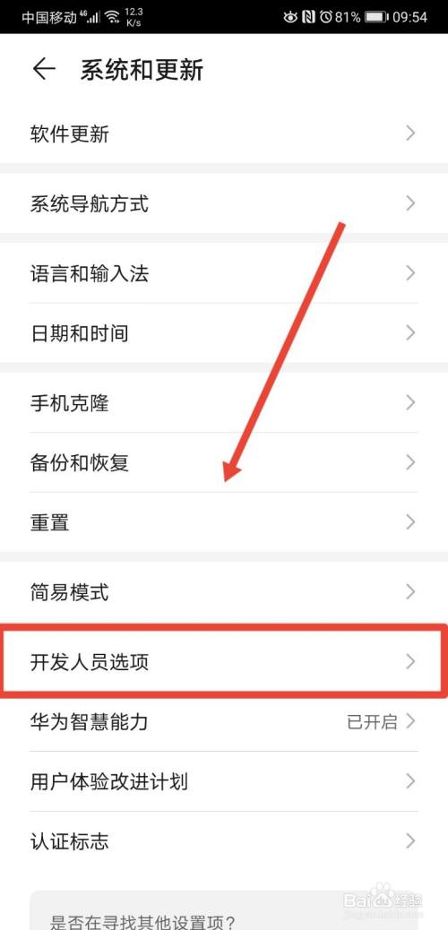 然后再点击进入开发人员选项功能;