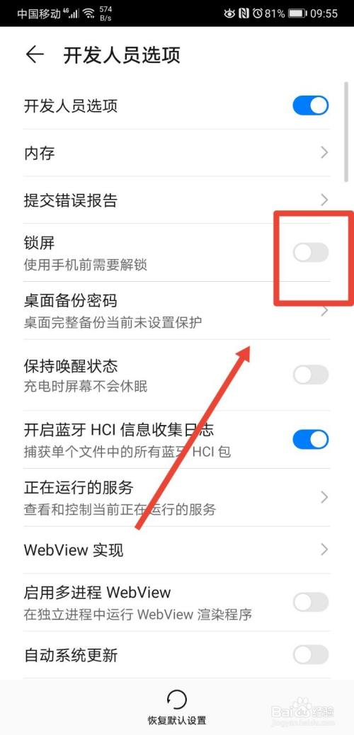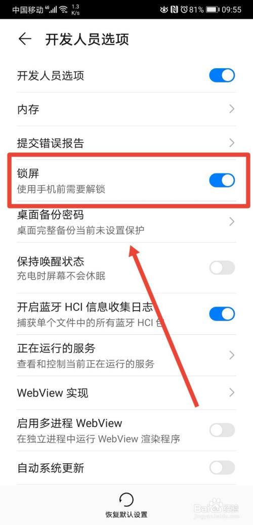进入到开发人员选项页面后,找到“锁屏”功能;