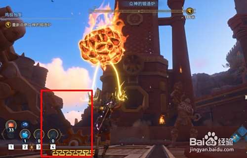 赫菲斯托斯拜托我们重新打开锻造炉,我们首先需要点燃四台炉子为煅炉提供火焰。以煅炉大门为中心左右各有两座火炉,首先点燃右侧下方的火炉,使用攻击破坏封印。