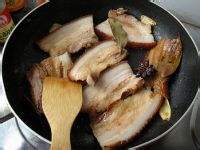 一定要盖上锅盖,因为炸制五花肉时候有油星溅出。