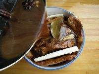 捞出煮好的五花肉,趁热抹上老抽上色,腌渍1小时。