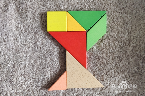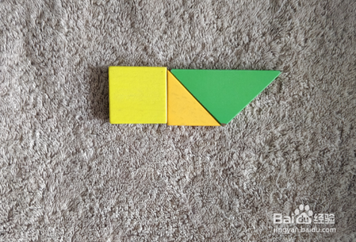 放上黄色三角形,右侧放上绿色三角形挨着,如图。