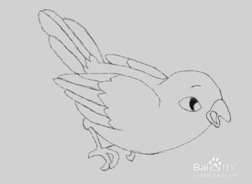 在小鸟的身体下面画出小鸟的两只爪子,如图所示: