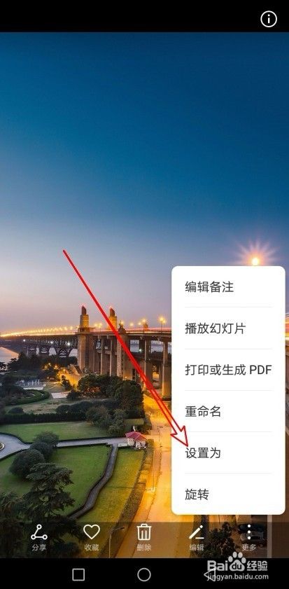 在弹出的照片更多菜单中,我们点击“设置为”菜单项。