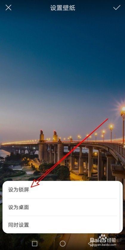 接着会弹出保存菜单,在弹出菜单中选择“设为锁屏”的菜单项。这样我们就把该图片设置为锁屏壁纸了。
