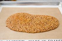 4将锅中的混合物倒在石板上冷却~~~ 可以用铲子或者勺子稍微铺开点,这样冷却得快一点, 成品也会薄一点~ :)