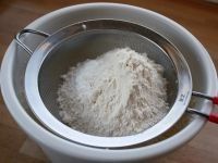 筛入面粉150克和泡打粉1/4茶匙。翻拌均,无干粉就好,不要过分搅拌,以免起筋。