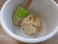 将杏仁碎倒入黄油糖浆中拌均,内馅就做好了。