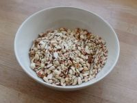将杏仁用料理机粗粗地打几下,过筛,取50克杏仁碎。