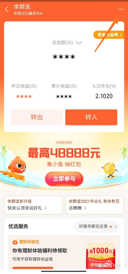 在余额宝页面上方点击【三个点】。
