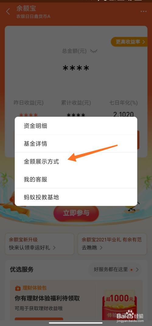 余额宝中的金额展现方式,有2种方式可以选择,根据习惯进行设置。