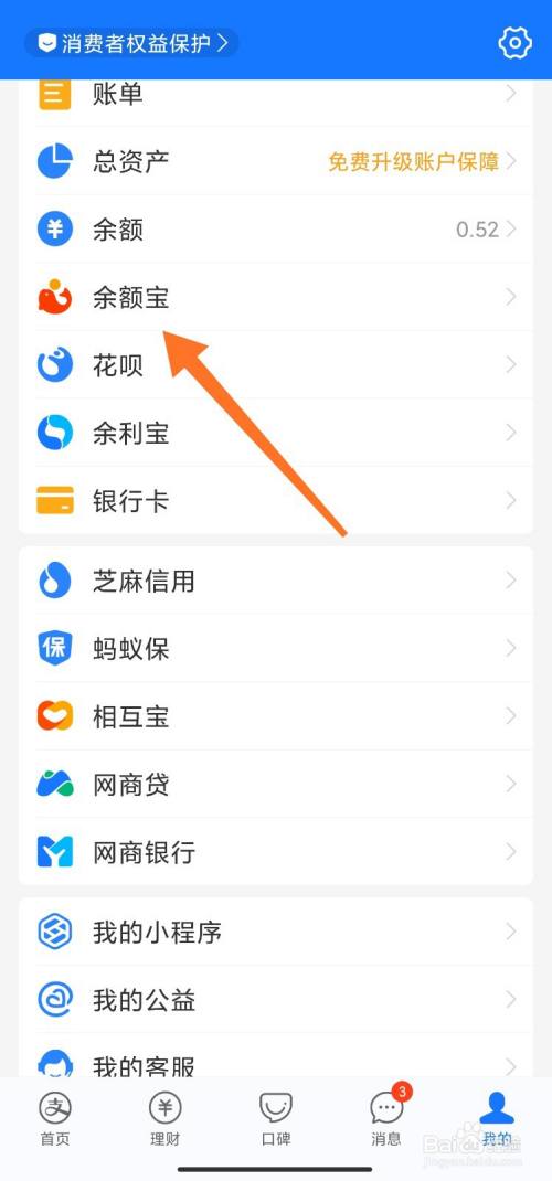 在支付宝我的页面点击【余额宝】。