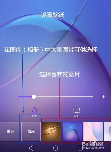 进入具体壁纸设置,选择下方的单纸图片,这是系统自带的,也可以选择图库(手机相册)的更多图片,设为壁纸。