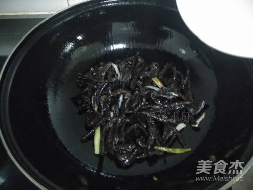 6加入疙瘩丝煸炒几下,点入2汤匙清水