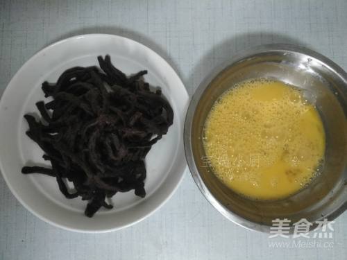 3疙瘩丝捞出稍微攥水,鸡蛋打散