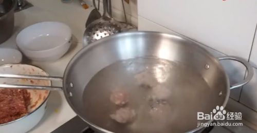 锅里烧水,让后下丸子,丸子很好做,用虎口一挤,用勺子碗下,放入锅中。