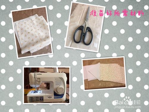 准备好所需材料,剪刀,缝纫机,泡芙坐垫的表面和里面各47块,封底布料一块,花边长条布料
