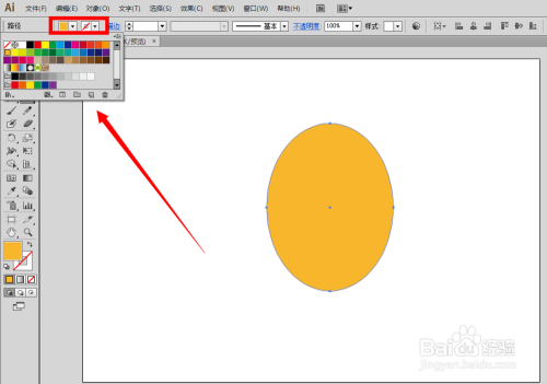 随便在空白的画布上绘制一个橙色,无描边的椭圆形图形