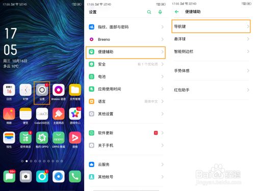 1、通过桌面的【设置】--【便捷辅助】--【导航键】进入。