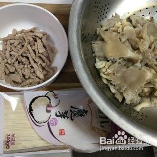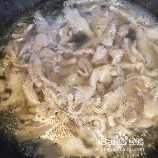 下肉丝翻炒片刻后,加入适量热水烧开。