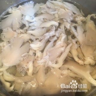 汤锅内加入适量清水烧开,下菌菇加少许盐焯水至熟。
