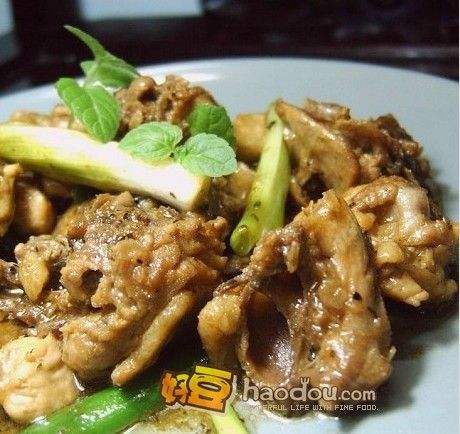 蒜、姜爆香油锅、下光鸡爆炒片刻后加入1饭碗水、适量的生抽以及砂糖翻炒均匀煮开后改小火焖煮10分钟左右至鸡肉软身 收汁即可。