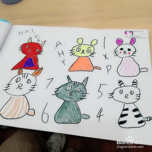 接着画第四只,第五只和第六只猫,画法都大同小异啦。