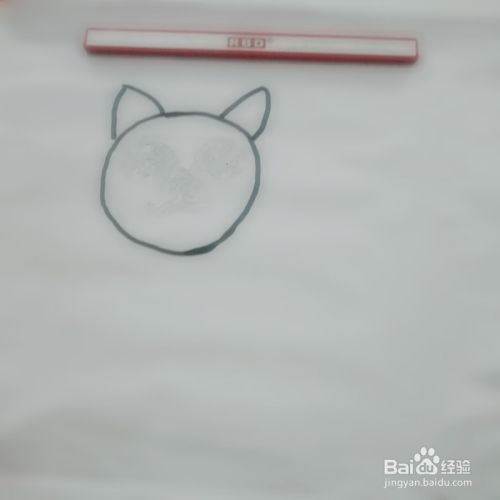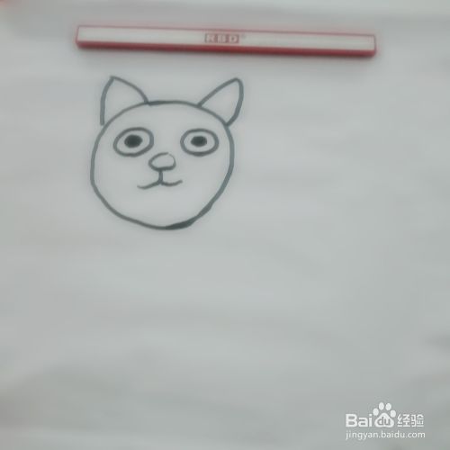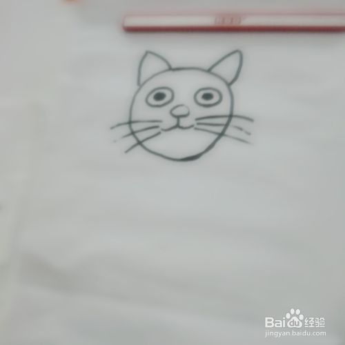 首先我们来画猫的脸,先画一个圆圈,再在圆圈上画耳朵,眼睛和鼻子和嘴巴。