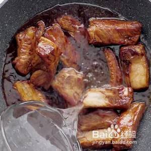 加水没过排骨,加盖小火炖50分钟左右,至汤汁变少,排骨比较软烂。
