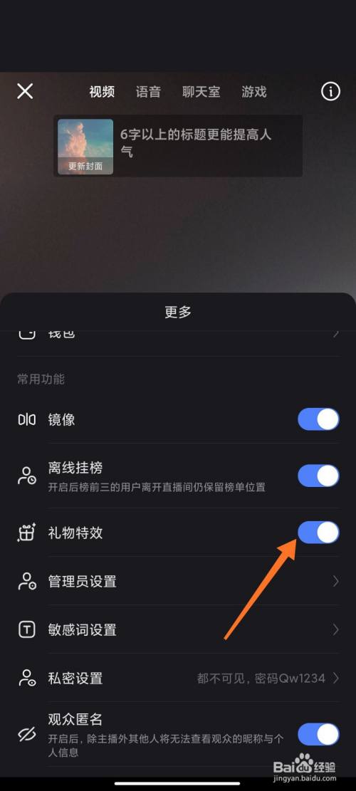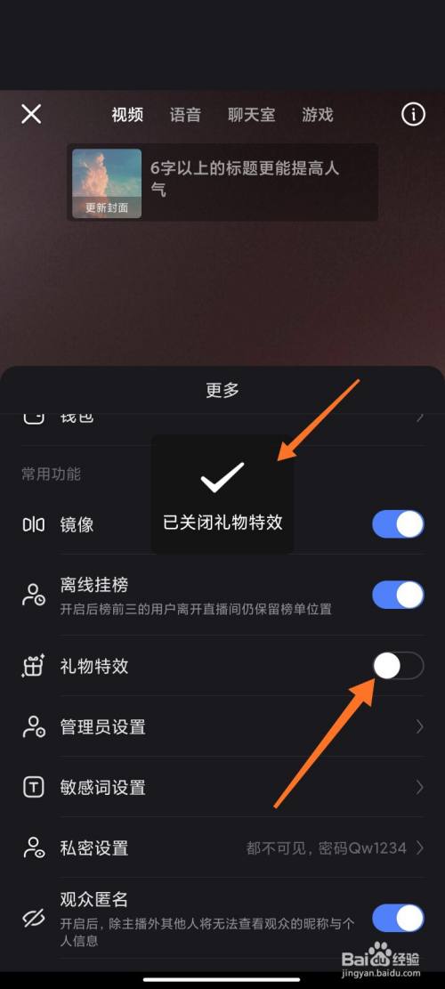 快手在直播时,当有人送礼物时会产生礼物特效,在直播前可关闭礼物特效设置。