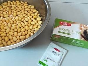 黄豆泡一夜,把泡过的黄豆放进豆浆机