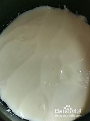 把装有搅拌好内脂、豆浆的电饭锅内胆放进电饭锅按保温功能键保温十分钟,美味嫩滑的豆腐花出炉了