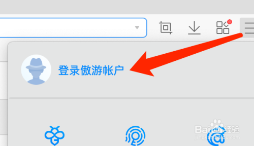 点击自定义及控制按钮后,点击登录傲游帐户。