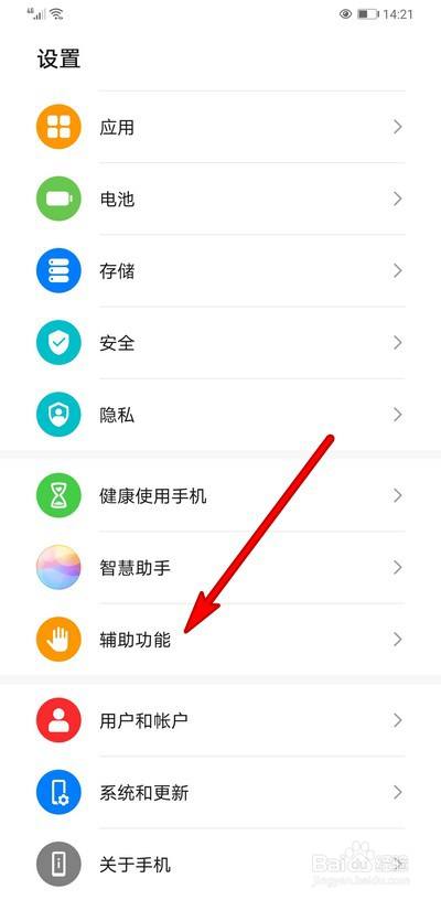 在手机设置界面打开辅助功能。