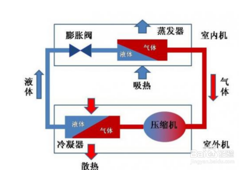 空调的原理就是冷凝成液体时释放热量,气化成气体时吸收热量。夏季制冷时,压缩机将制冷剂压缩液化,产生的热量通过冷凝器释放。