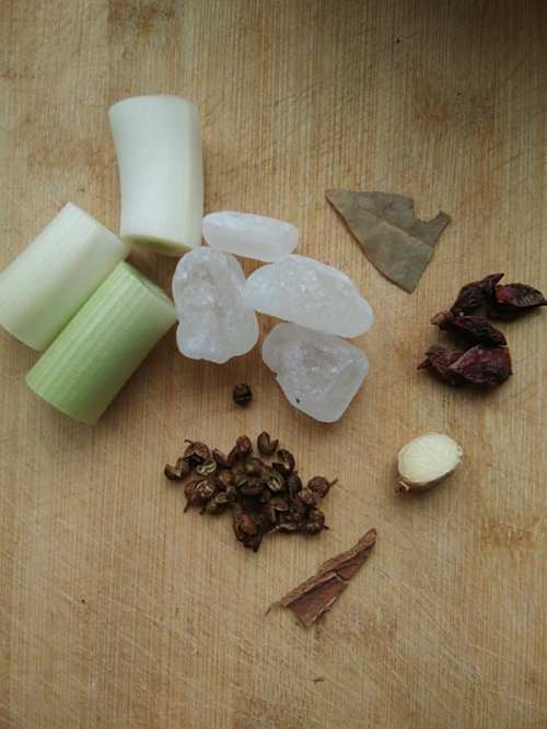 2配料:花椒,香叶,桂皮,按照个人的喜欢添加,不喜欢可以不放。