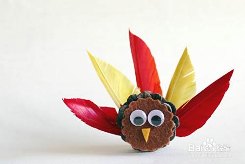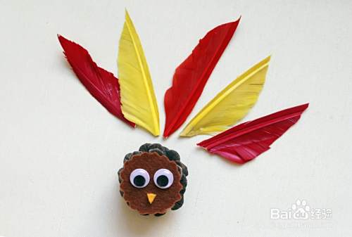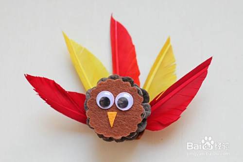 8、用手调整一下羽毛的位置,一直可爱又好玩的松塔小火鸡就做好啦!
