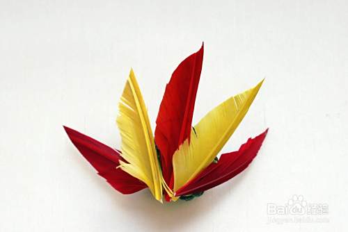 5、将选好的羽毛剪成合适的长度,约为松塔直径的2倍。用剪刀修剪羽毛的边缘,形成好看的弧度。