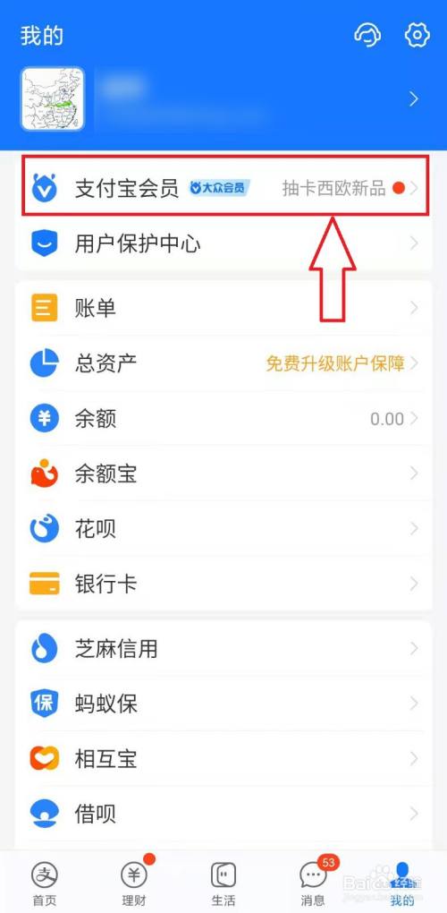 在弹出的页面中,选择首选项"支付宝会员"选项。