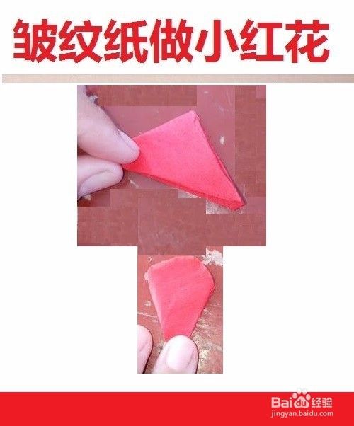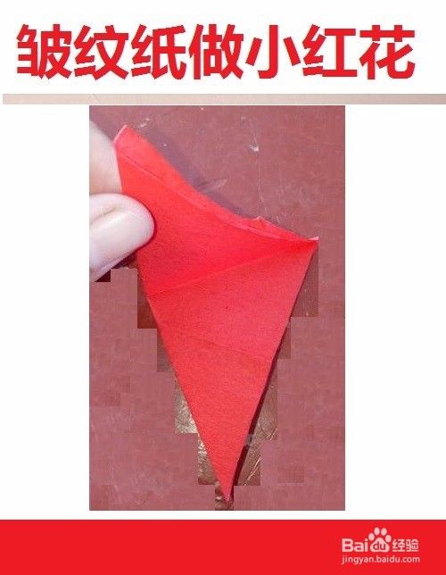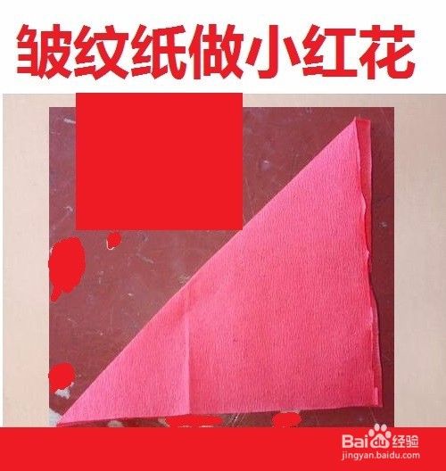 首先我们把皱纹纸裁剪成小正方形,然后如图而折叠成大的三角形。