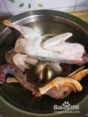 鸭子洗干净,冷水下锅,煮开,撩水。