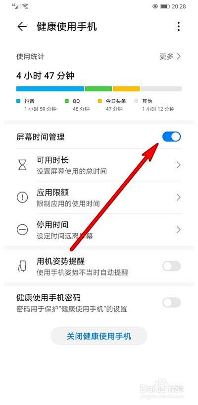 手机屏幕时间管理功能,如果不需要可以选择关闭。那么,华为手机屏幕时间管理怎么关闭。