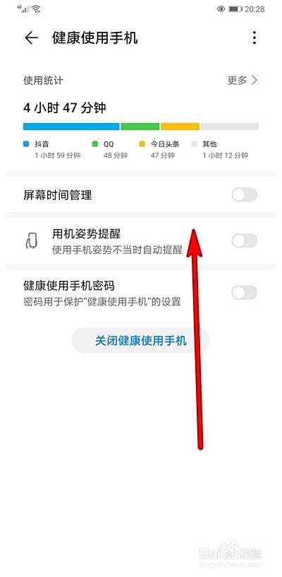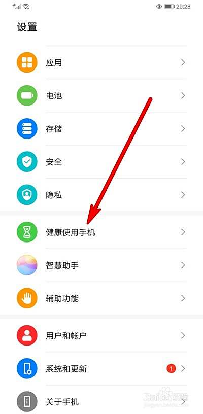 打开健康使用手机选项。